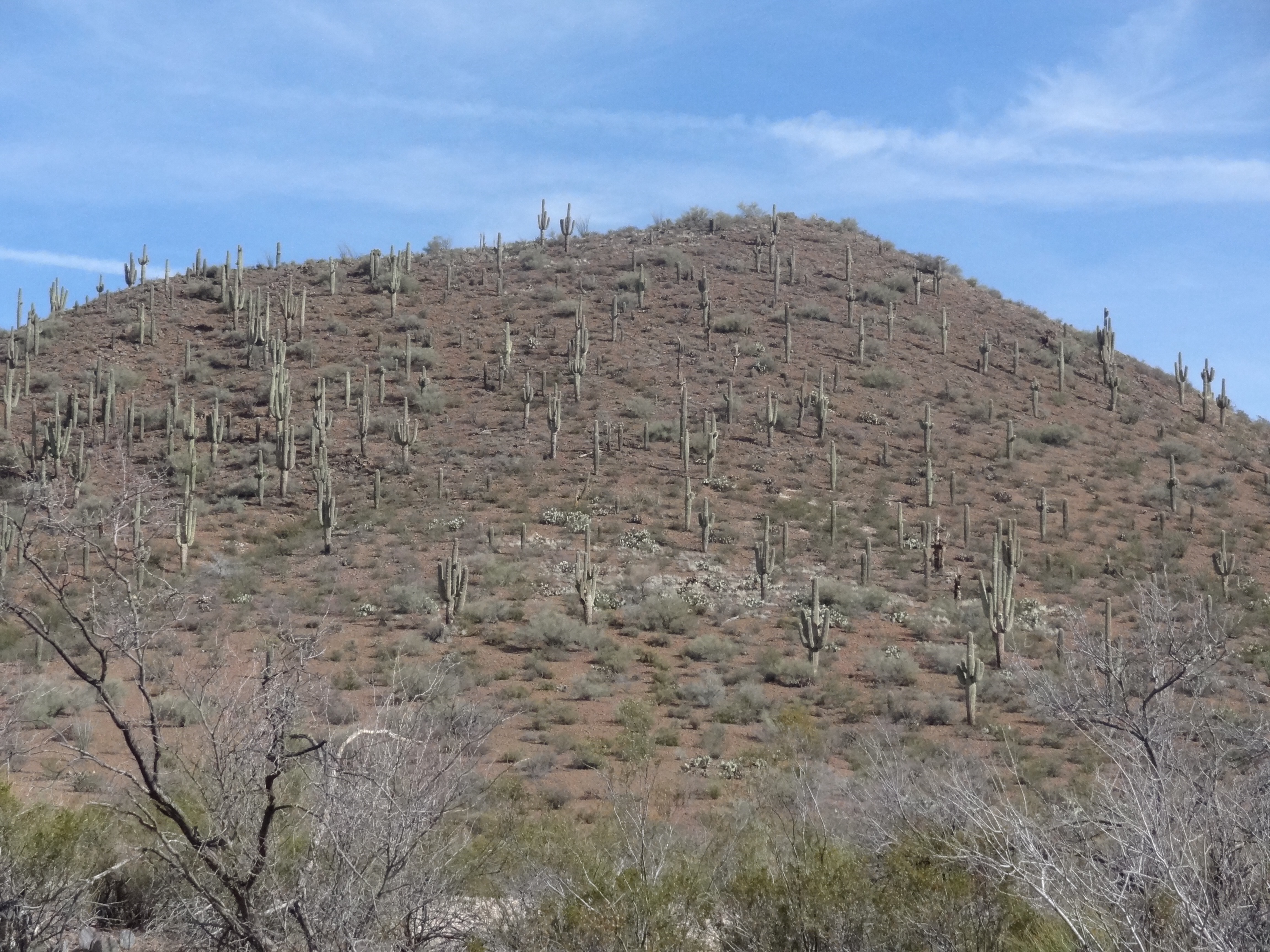 What a a spectacular view to our left. Mountains and more mountains with spots of green amongst the desert landscape. The Saguaro cactus dotted the hills which made it look as though they had marched off of the desert floor and climbed the hill to stake their claim.